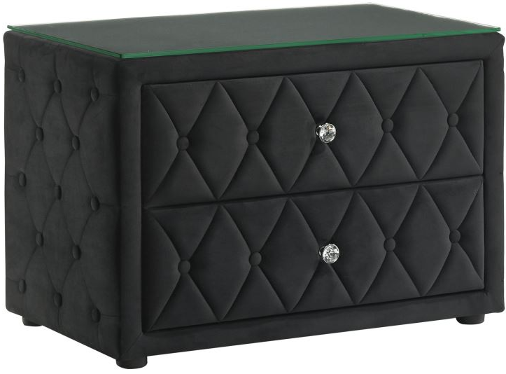 This stunning nightstand exudes modern sophistication with its luxurious velvet upholstery and elegant diamond-tufted design. The two spacious drawers provide ample storage, while the crystal-like drawer pulls add a touch of glamour.Read More